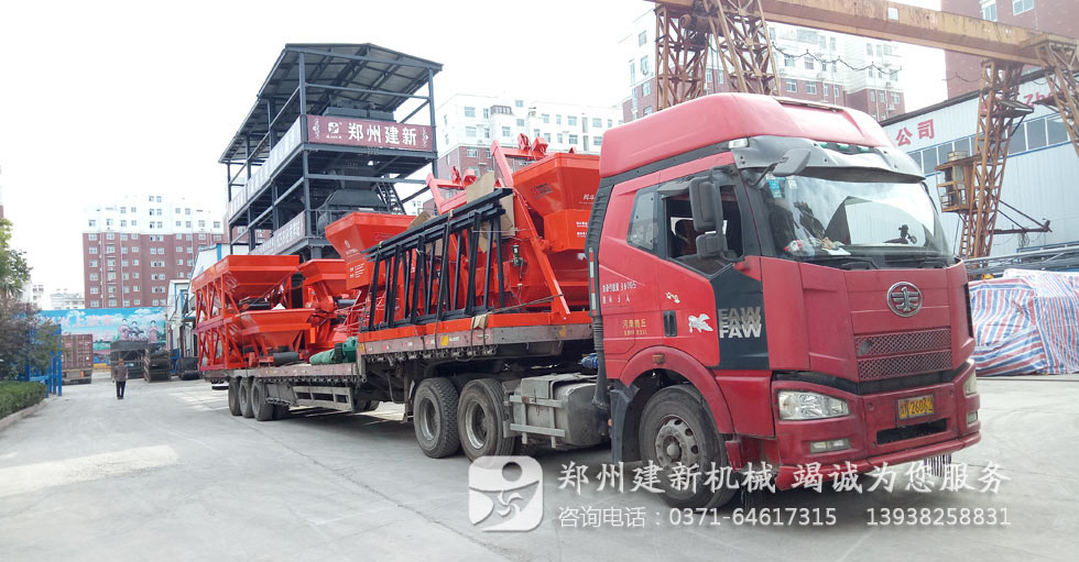 2017年9月24日,一臺臺攪拌機與配料機在運貨司機以及建新發貨人員、裝貨人員的共同努力下,如期的將建新生產的750混凝土攪拌機與800配料機設備批量發送至發送河南商丘,敘述此次發貨已經是近三月內建新為商丘客戶提供的第四批攪拌站設備。