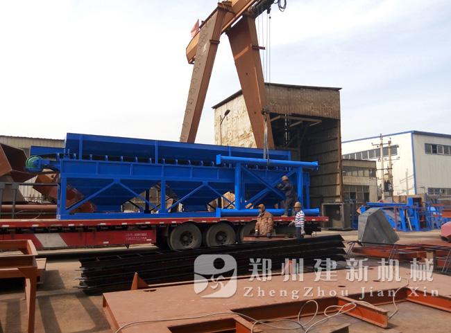 導讀:鄭州建新機械制造有限公司貨場上,一臺PLD1600三倉砂石配料機正在做著最后的檢驗工作,準備發貨。據了解,這臺PLD1600砂石配料機與前兩天發出的JS1000混凝土攪拌機是同一批設備,為一套HZS60混凝土攪拌站。